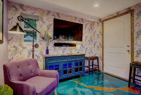Enter this distinctive solar-powered, vibrant backyard cottage, described by a guest as feeling like living in a painting. The studio brims with character, featuring ceiling art and radiant heated flooring. Situated near Shooks Run creek, it offers uneexpected tranquility yet remains a breif stroll or bike ride from downtown. The backyard boasts a shared 420 lounge, and your host, a prominent local food journalist, offers expert dining and drinking recommendations beyond the listed 30 Best Restaurants.