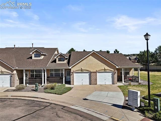 Here is an extraordinary opportunity to own a well maintained one level townhome in Monument. Located just minutes away from shopping, parks, and has quick access to the interstate. This one level home has zero stairs or steps, and is move in ready. The living room is generously sized, has vaulted ceilings, and a dormer window above the front window to let in extra natural light. You will find the kitchen and the spacious dining room just steps away from the living room. The kitchen is open in design and includes tile flooring and a counter top bar. There are 2 bedrooms to include a primary bedroom with an attached private bathroom. The driveway is long enough to accommodate parking a vehicle, so when you have a guest, they do not have to look for parking in the community. Having a south facing driveway sure comes in handy during the winter months as Mother Nature helps melt the snow. Monument Villas is a small, quiet, well taken care of community that is tucked away in the heart of Monument. Enjoy some time on the covered front porch and take in the fresh air. A quick walk brings you to a handful of local eateries. There is a community center and gym facilities for the owners. The HOA fees include water & sewer usage, exterior maintenance, lawn care, grounds keeping, snow removal, trash service, and insurance for the structure...making it easier to track expenses. This is a rare find in the community. Set your private showing today!
