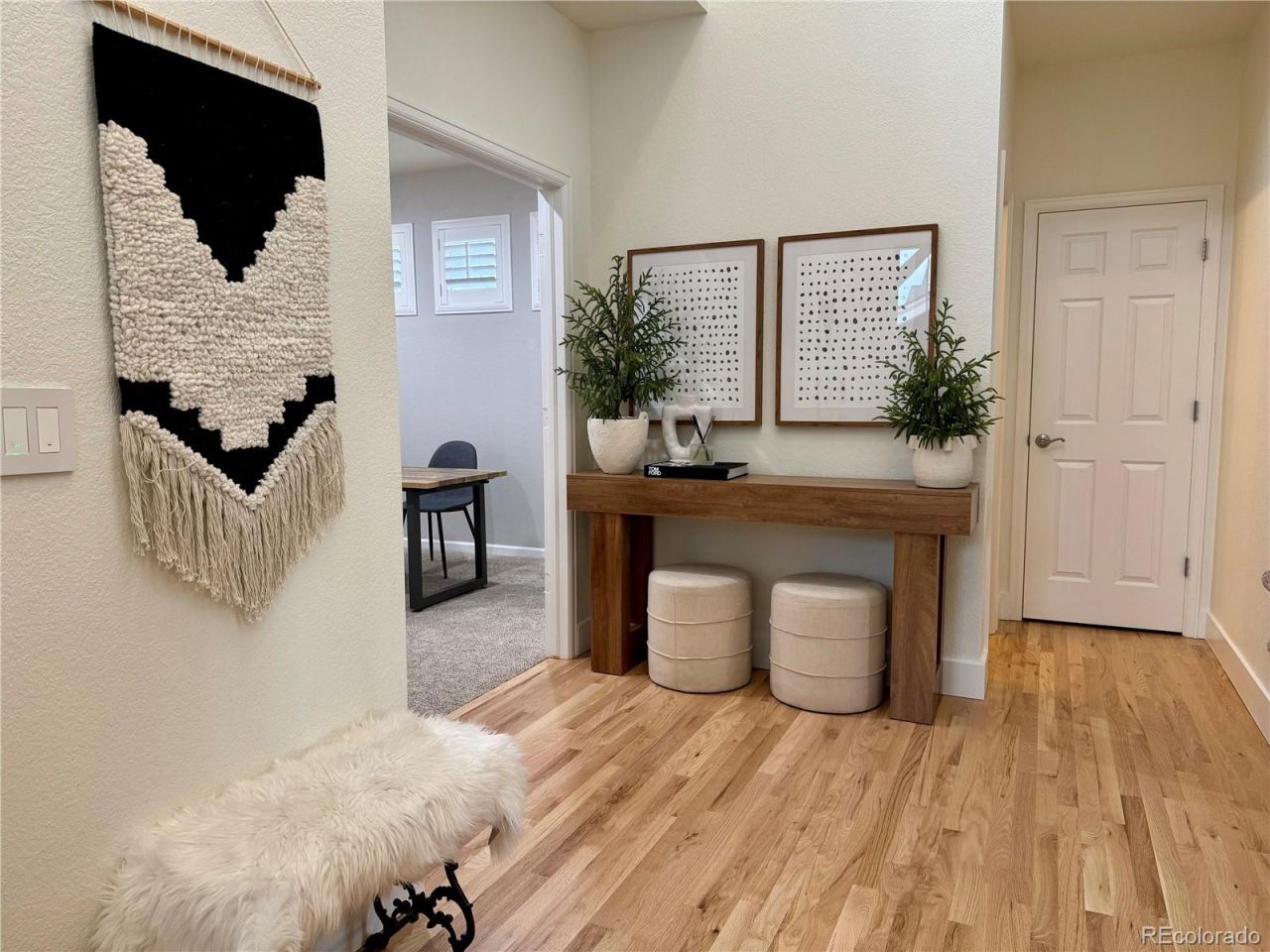 Move right into this beautifully updated 5-bedroom, 3.5-bath home featuring a finished walkout basement and exceptional indoor-outdoor living. The home boasts an open floor plan with large great room, eat-in kitchen, coffee & cocktails lounge, den/study, newly refinished hardwood floors, freshly painted interior, shutter clad windows and an abundance of natural light. The space is open and expansive yet cozy and welcoming at the same time. The kitchen has granite countertops and new appliances, soft-close cabinetry, dedicated pantry and island seating. Upstairs youll find a spacious primary suite with loads of space, and an en suite bathroom featuring heated tile floors, a freestanding soaker tub, private water closet, double vanity, walk-in shower and large closet. The laundry is also located on the upper level for added convenience, as well as an additional two bedrooms and full bath in the hall. The walkout basement is finished extending your living space with two additional bedrooms, a full bath with shower and jetted tub, and a den with a wet bar complete with microwave and dishwasher. Youll also find a dedicated flex/workout room with padded flooring and a fun, finished under-stair play area with a secret tunnel. Enjoy Colorado living at its best with a massive west-facing Trex deck and a multi-level stone patio featuring a built-in fire pit and seating walls?perfect for entertaining or relaxing while taking in the mountain views. Castle Rock continues to be one of the most sought-after places to live in the Denver metro area with its small-town charm coupled with modern conveniences. Nestled between Denver and Colorado Springs, Castle Rock has a vibrant, historic downtown, highly-rated schools, community events year-round, local shops, dining, and entertainment. The Meadows residents enjoy access to hiking trails, mountain bike trails, parks, The Grange pool, Taft house pool. tennis courts, and open spaces.