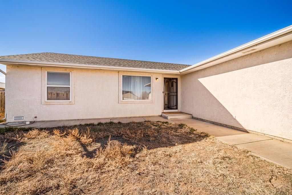Beautiful home in a great location, within 10 minutes of Pueblo Reservoir entrance and just 5 minutes from Liberty Point! True main level living. This 4 bedroom, 2 full bath home with a stucco exterior has an open layout with newer vinyl plank flooring. The spacious, private primary suite is sure to please with a walk-in closet with wood shelving and dual sinks in the full bathroom. Across the living room, you will find the guest bathroom and three secondary bedrooms. The kitchen features an eat-in peninsula, double oven, pantry and a designated coffee bar. Walk out from the dining area to the covered back porch and large yard with a storage shed and views of Pikes Peak.