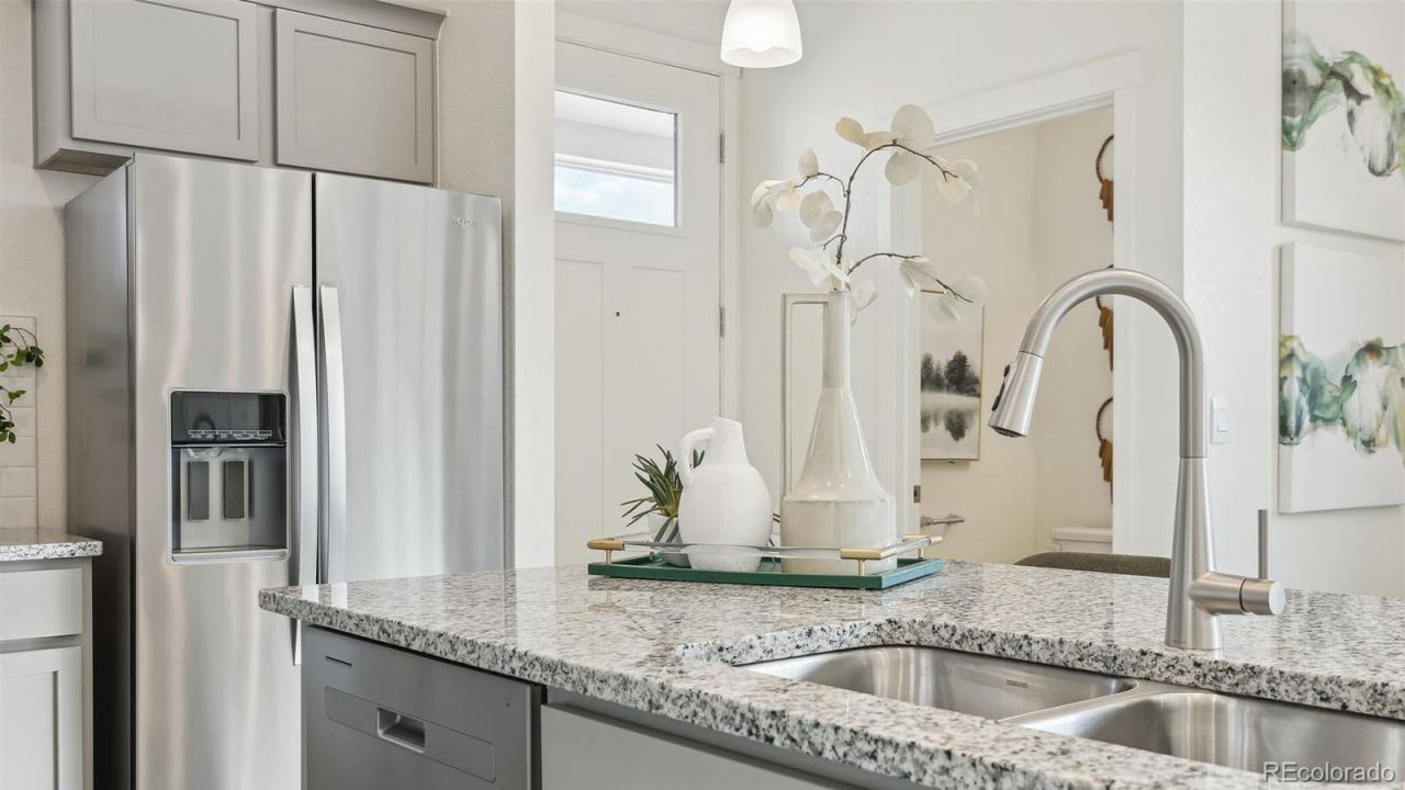 This stunning Muirfield home is a 3 bed 2.5 bath paired home with a loft upstairs and an attached 2-car garage. Step inside and be greeted by the open-concept main floor, featuring a modern kitchen, dining area, and living room. The kitchen is equipped with quartz countertops, single bowl undermount sink, and stainless-steel appliances with gas range. A convenient half bath for guests adds to the functionality to the main floor. Upstairs, youll find the generously sized bedrooms with ample closet space. The primary suite is a peaceful retreat, complete with an ensuite bathroom featuring double sinks and an impressive walk-in closet. Laundry chores are made easy with the conveniently located laundry room upstairs. Enjoy the outdoors with an oversized front porch. Additional features of this home include A/C, a tankless water heater, window blinds, and a smart home package. Nestled in the Front Range of the Rocky Mountains, Revere at Johnstown Paired offers a desirable location with easy access to I-25, shopping, dining, and abundant outdoor recreation at nearby parks, golf courses, and reservoirs. Dont miss out on this opportunity to own a beautiful home in a noteworthy neighborhood. Contact us today to schedule a showing and make this your new home! ***Estimated Delivery Date: June. Photos are representative and not of actual property***
