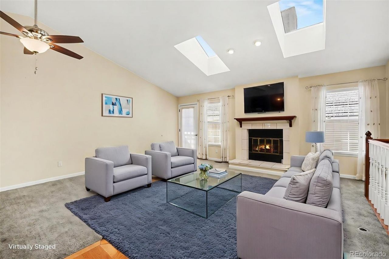 Welcome to effortless, low-maintenance living in a quiet, wonderful community where comfort and convenience come together beautifully. This rare end-unit ranch offers a true lock-and-leave lifestyle, perfectly positioned for easy access to everything the Denver metro has to offer while still feeling tucked away and peaceful. Step inside to a bright, open floor plan filled with natural light, soaring vaulted ceilings, and warm hardwood floors in entry and kitchen. The inviting living space is anchored by a cozy fireplace, creating the perfect setting to relax or entertain. The spacious kitchen features granite tile countertops and generous workspace that flows seamlessly into the main living and dining areas. The thoughtfully designed main level features two spacious primary suites, each with its own bathrooms, offering flexibility for guests, roommates, or multi-generational living. Main-floor laundry adds everyday convenience, making this home truly move-in ready and easy to enjoy. Downstairs, the partially finished basement expands your possibilities with an additional bedroom, half bath, and a versatile bonus space ideal for a home office, gym, media room, or private guest retreat. Outside, unwind on your large, private deck, perfect for morning coffee or evening gatherings, while enjoying the privacy that comes with an end-unit location. A detached two-car garage with epoxy floor provides added storage and convenience. With access to community amenities like a pool, activity courts, and scenic walking trails, this home offers a balanced lifestyle of relaxation, recreation, and connection. Come experience a home where every detail supports the way you want to live.