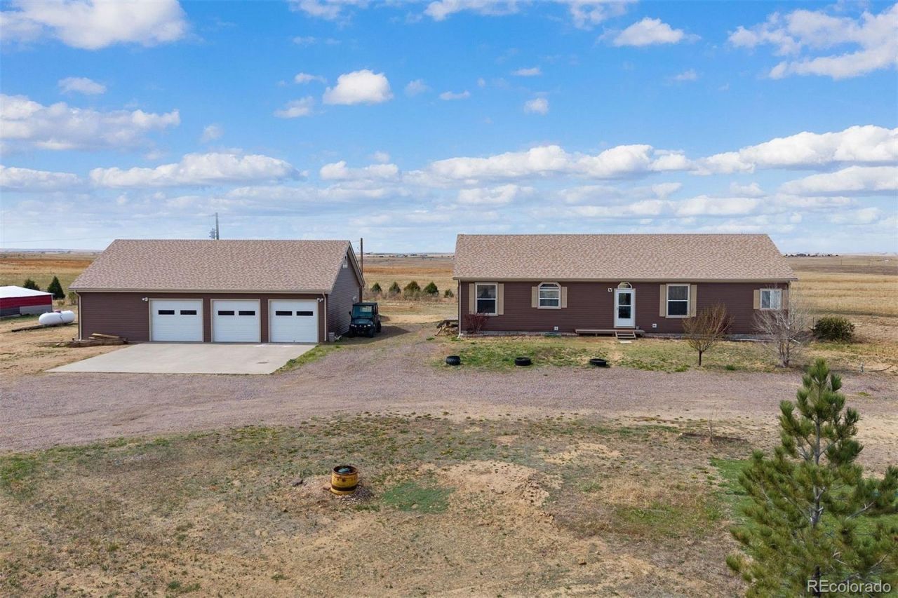 Nearly 40 acres of usable land with sweeping views, fenced pastures, and the infrastructure to support true country living?this is the freedom and flexibility buyers are searching for. The property is fully equipped for agriculture and/or livestock, featuring a barn with 2 stalls, chicken coop, and dedicated housing for goats and sheep. A spacious workshop provides room for projects, hobbies, or business use, while the oversized garage offers three doors, four bays, and extensive storage both along the perimeter and in the rafters. Designed for self-sufficiency, the property includes an owned propane tank, well water, and a septic system?making off-grid or low-dependency living a real possibility. The primary residence offers convenient main-floor living, along with a fully separate walk-out lower level complete with its own kitchen and handicap-accessible entrance. This setup creates two distinct and flexible living spaces?ideal for multi-generational living, rental income, or private guest quarters. Located within the desirable Byers School District and just a short drive to everyday amenities, this property offers the perfect balance of rural independence and practical convenience.If youve been looking for a place in the country where you can truly live how you want?this is it.
