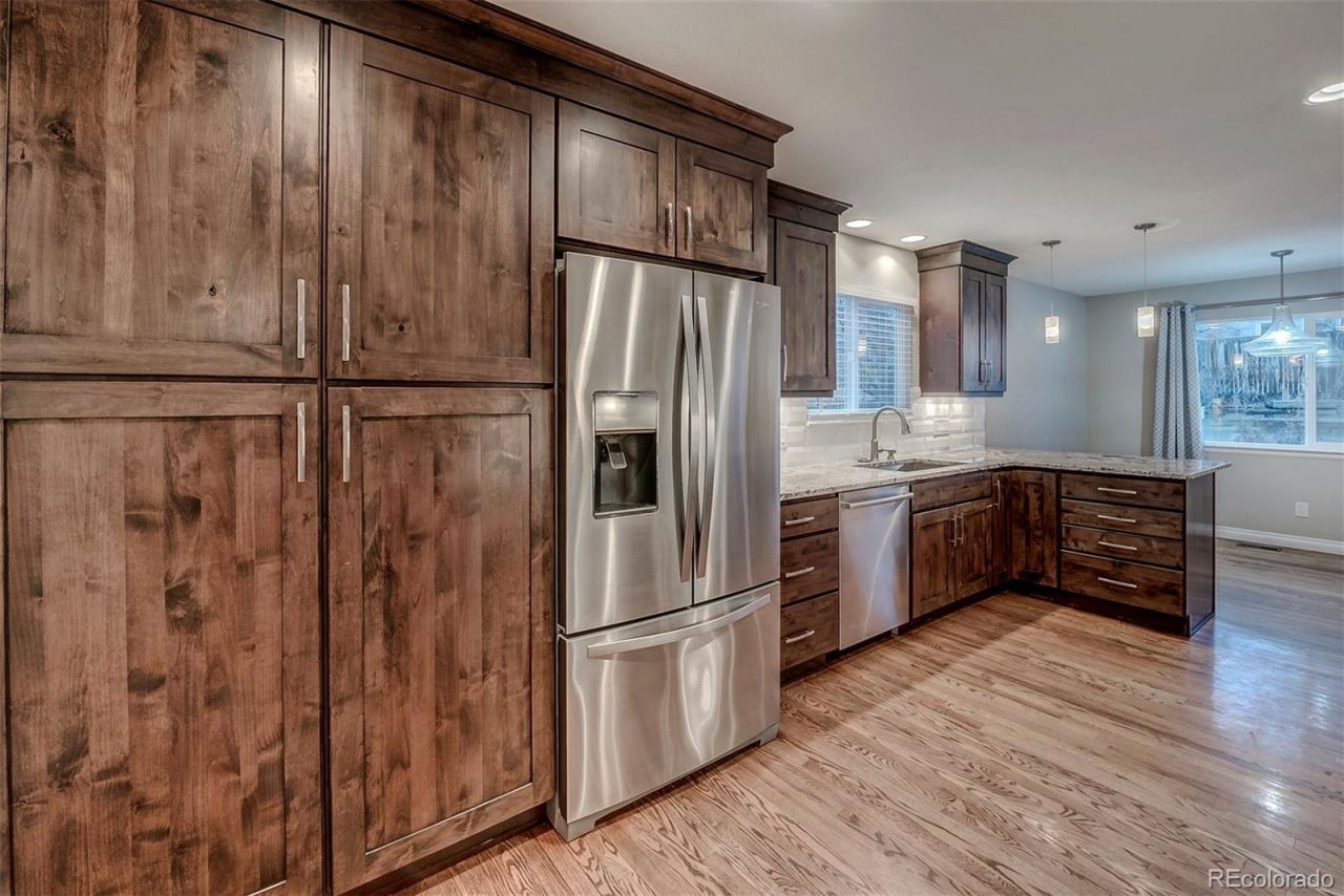Fully remodeled 5 bed 4 bath Highlands Ranch home with 4 beds on upper level. Main floor features a custom built kitchen with knotty alder shaker style cabinets, large pantry with pull out shelves, stainless steel appliance package, double oven, eat-in kitchen spaces on 2 countertops & kitchen nook for casual dining. Kitchen flows into living room with wood burning fireplace & gorgeous large brick mantle shelf. Wall of windows in kitchen & living rooms allows great natural light, ease to entertain & watch kids or dogs playing in the backyard. Kitchen also connects to formal dining room. Main floor office is light & bright. Powder bath completes the main level. Upstairs find a gorgeous primary suite with vaulted ceiling, walk-in closet, double headed shower, quartz countertops, dual sinks & 3 window seats to sit & watch sunrises & sunsets with your southern exposure. Amazing natural light throughout. Upstairs has 3 additional bedrooms & full bathroom with deep soaking bathtub to wash your cares away. Upstairs laundry with washer & dryer. Basement could easily be used as an in-law suite & comes complete with bedroom, 3/4 bathroom, office with French doors, family room & bar area. Bar area could easily be used as downstairs kitchen space. Two great basement storage closets. Outside enjoy a large private yard with mature trees. Backyard has gorgeous stamped concrete patio, poured concrete patio, three tiered garden beds & plenty of room to plant for a green thumb. Apple trees. Rent includes quarterly HOA Dues with access to 4 Highlands Ranch Rec Centers with amazing clubhouse, fitness, pools, tennis courts, rock walls, kids programming & activities, classes & much more. Only a block away from trailhead that connects to incredible Highlands Ranch trail system. 21 parks & playgrounds throughout Highlands Ranch. Top notch Douglas County schools! Minutes from grocery stores, restaurants, bars, movie theaters, etc. Call for a showing today! Ready 4/17/26.