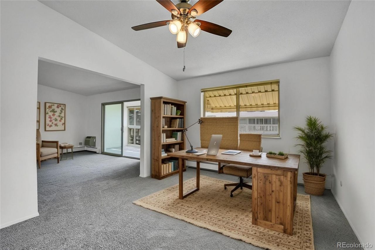 Welcome to 9655 E Center Avenue #9D, Denver, CO 80247, easy living in Windsor Gardens, Denvers premier 55+ community. This rare top-floor condo stands out with both a building elevator and a private underground parking garage, features not often found together, offering comfort, convenience, and peace of mind.Inside, youll find fresh paint, brand-new flooring, and a bright, open layout that makes downsizing feel like an upgrade. Sunlight fills the space, leading you to your private lanai where you can enjoy peaceful mountain views with your morning coffee or evening unwind.A unique highlight of this home is the flexible bonus space, perfect as an office, den, or hobby room, with the option to easily convert it back into a true, conforming bedroom if desired.Enjoy everyday comfort with ceiling fans in every room, air-conditioning units, a pantry, and generous storage throughout. Your secure, weather-protected garage space adds ease to daily living, while the elevator provides effortless access to the top floor.Windsor Gardens offers a vibrant, low-maintenance lifestyle with a well-managed HOA that includes access to a 9-hole golf course, indoor and outdoor pools, fitness center, library, woodworking shop, and a wide variety of classes, clubs, and social activities. Walk to nearby shops and restaurants and bring your furry companion along. The HOA includes the property tax! Move in now! We have a couple lenders that are offering a 1% rate buy down for one year to qualified buyers, please inquire!